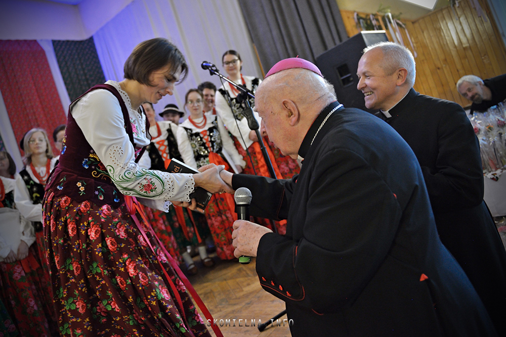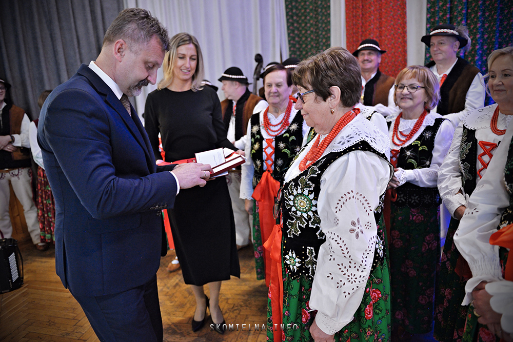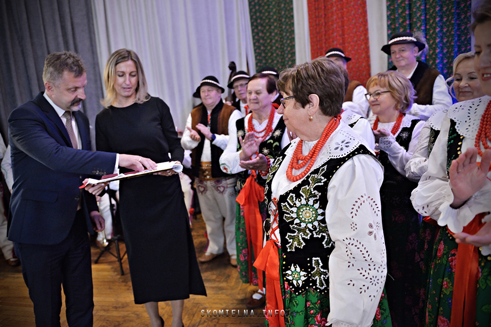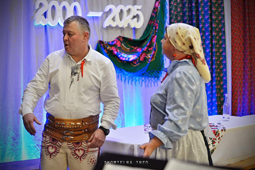 Ten uroczysty wieczór nie mógł się obyć bez pełnego radości i energii występu Jubilatów. Zespół przestawił scenkę obyczajową „Dawne poprawiny”, pełną humoru, śpiewu i tańca.