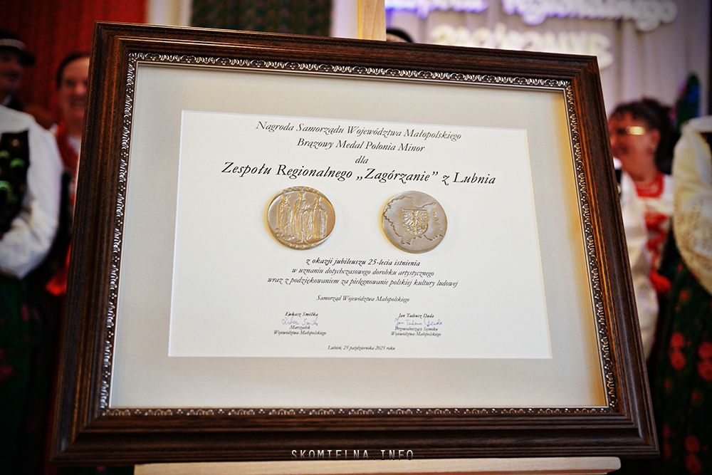 Ważną częścią uroczystości było wręczenie Medali „Zasłużony dla Kultury Polskiej”, nadanych przez Ministra Kultury i Dziedzictwa Narodowego p. Anieli Wilczak – kierownika Zespołu Regionalnego „Zagórzanie” oraz Zespołowi Regionalnego „Zagórzanie”. Odznaczenia zostały przyznane na wniosek dyrektora Gminnego Ośrodka Kultury w Lubniu p. Edyty Brzezickiej. Medale wręczył Przewodniczący Rady Gminy Lubień p. Jan Śmiałek i p. Edyty Brzezicka. Wręczono także Nagrodę Samorządu Województwa Małopolskiego Brązowy Medal Polonia Minor, która została wręczona przez: radną Województwa Małopolskiego p. Danutę Kawę i kierownika agendy zamiejscowej UM Województwa Małopolskiego w Suchej Beskidzkiej p. Artura Szyszkiewicza