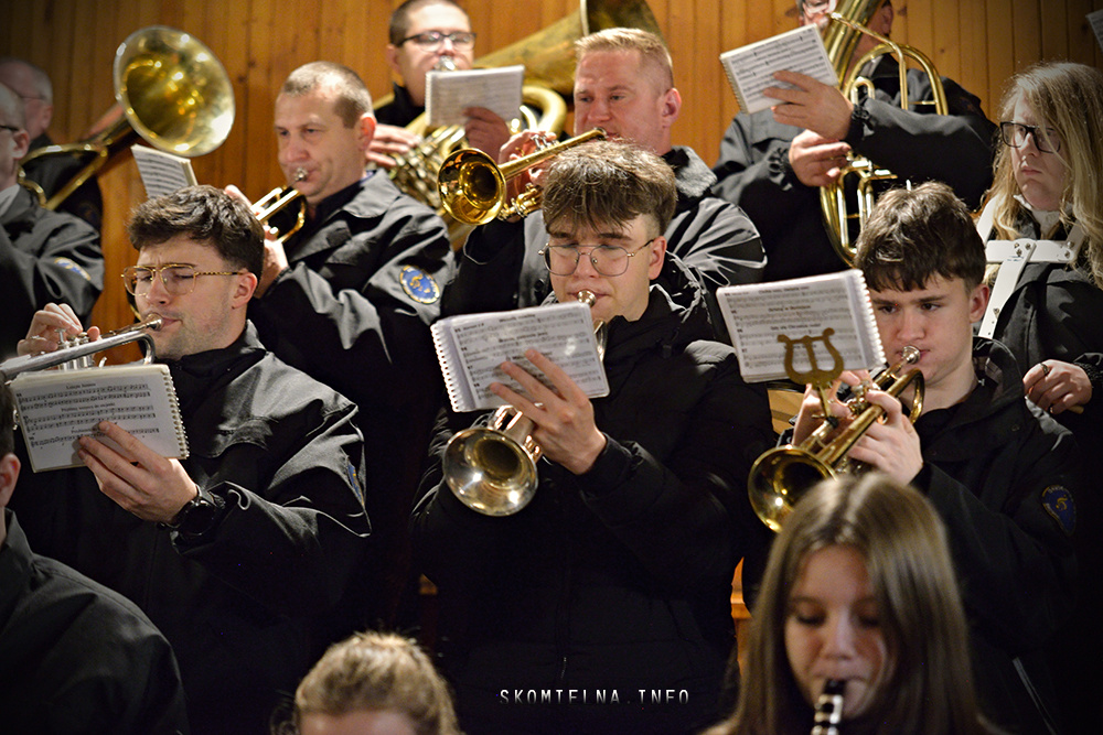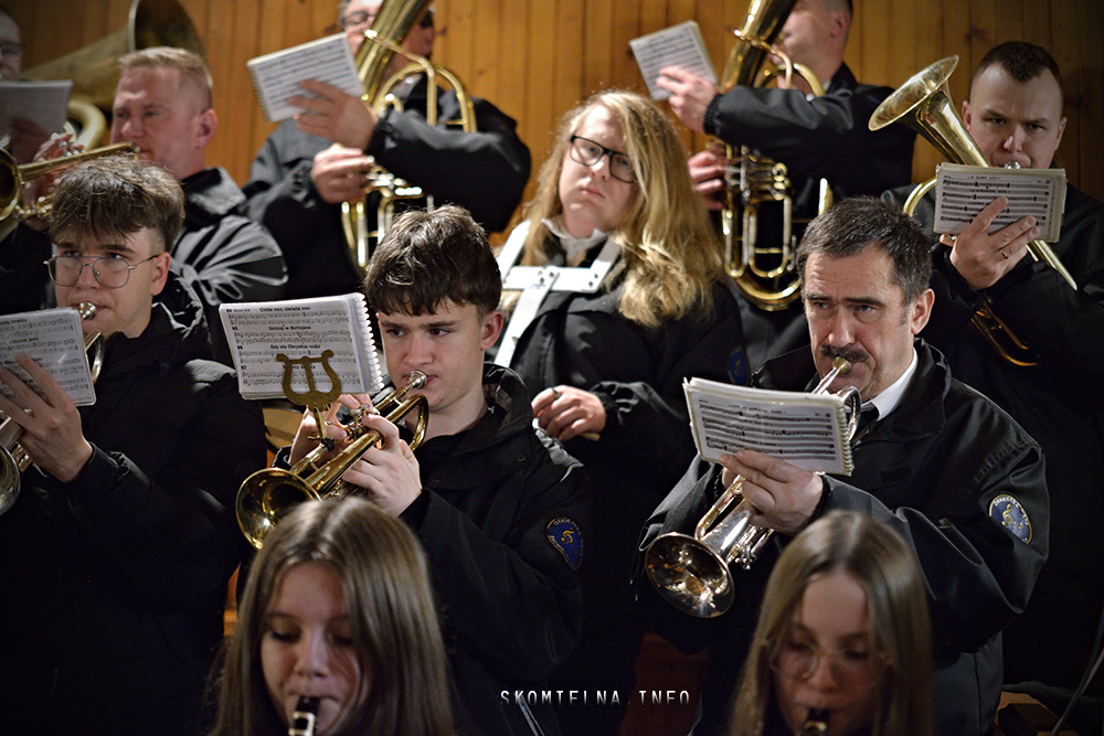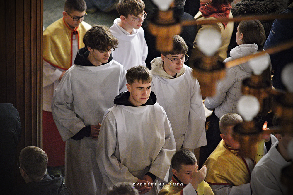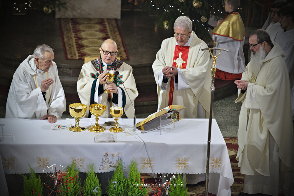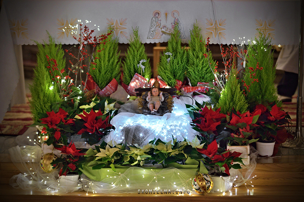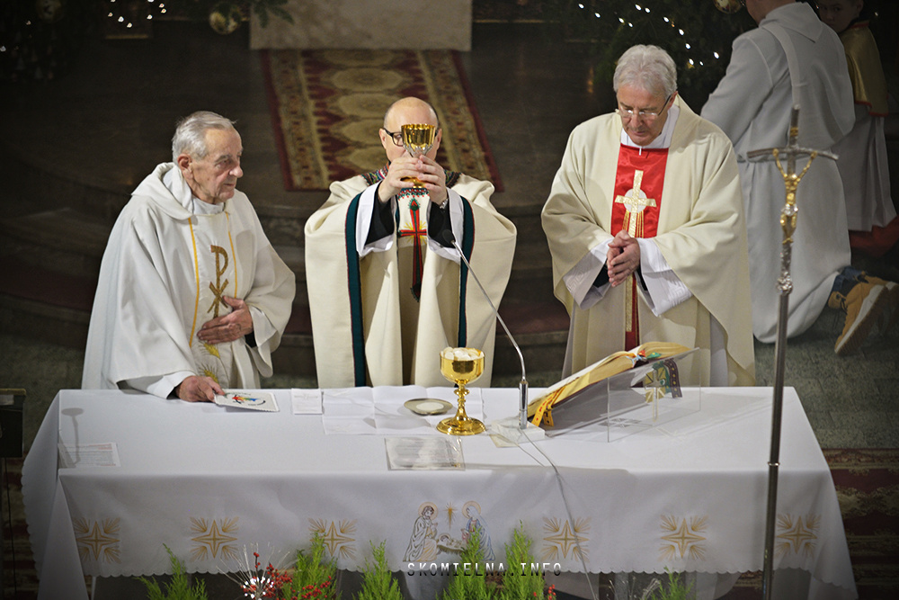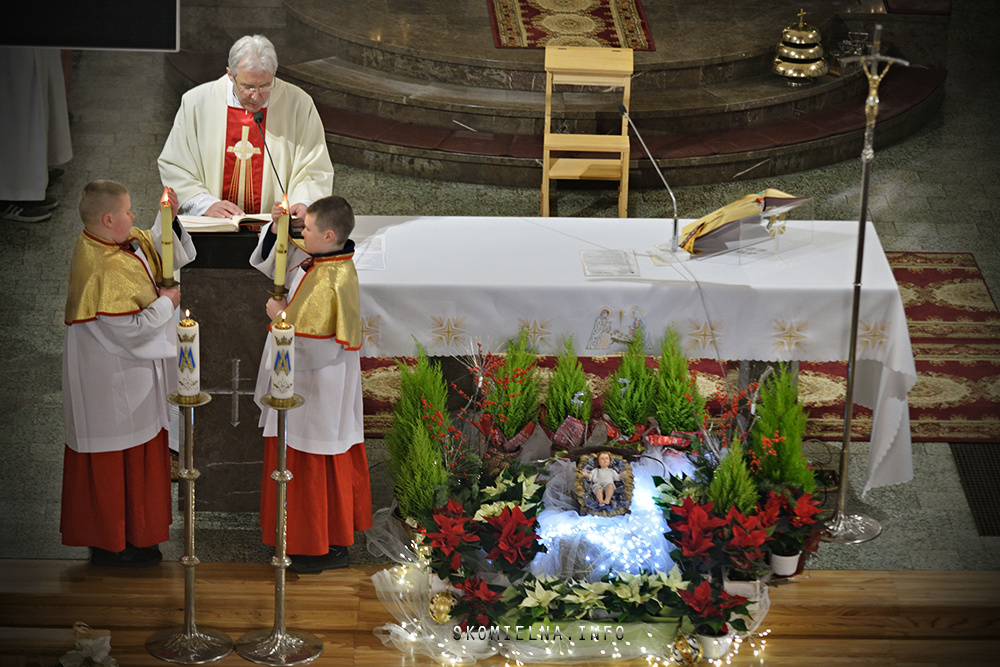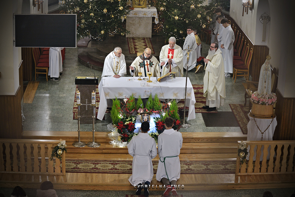Józefem Macioł oraz, ojciec Wojciech Surówka. Mszę Świętą uświetnił występ Orkiestry Dętej Ochotniczej Straży Pożarnej w Skomielnej Białej i śpiew w wykonaniu ScholI San Sebastian…Kilka zdjęć z dzisiejszej Pasterki. Fot-Zbyszek Kraus