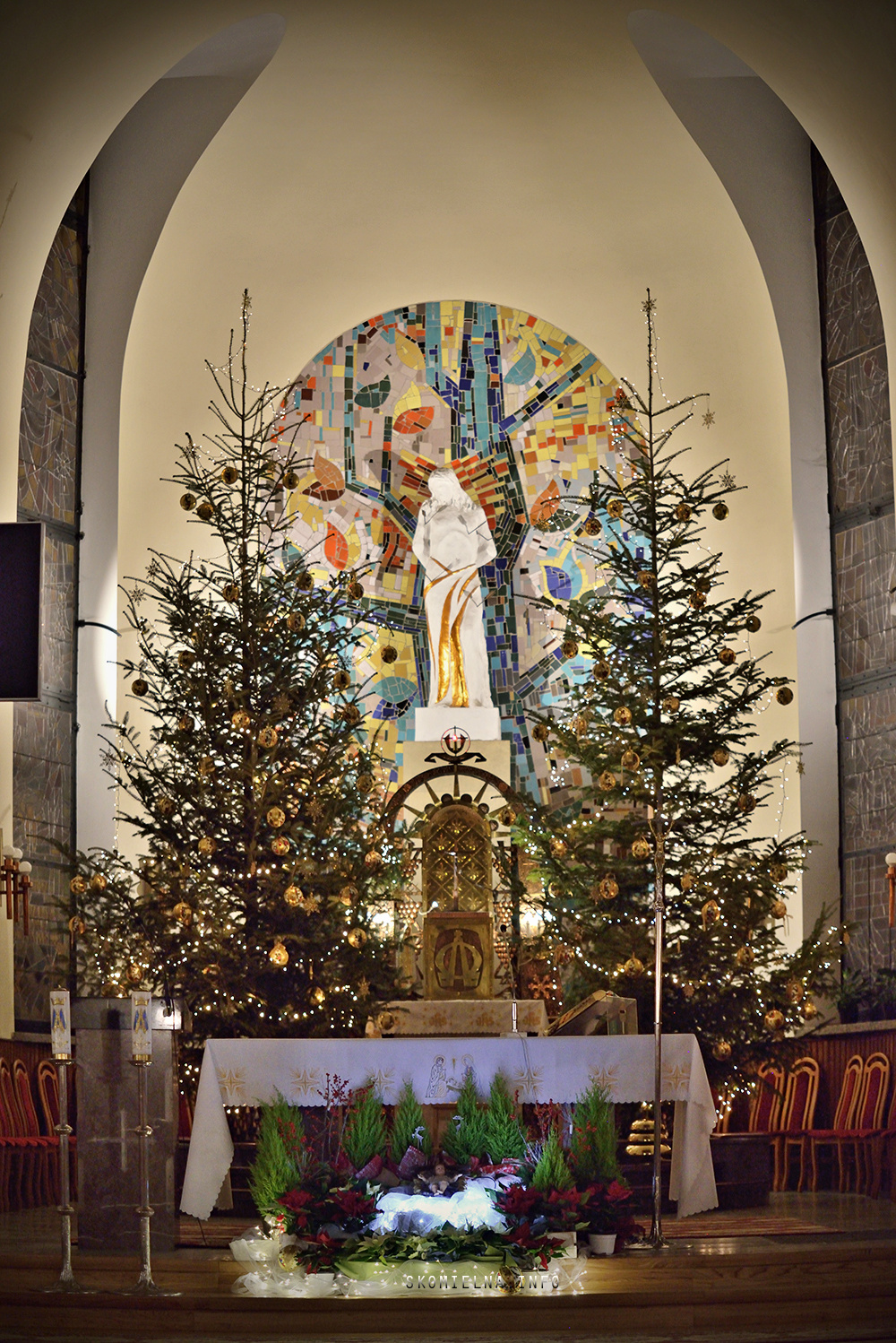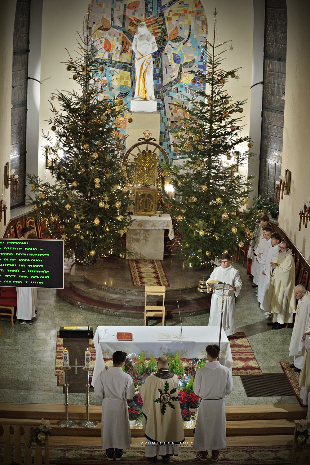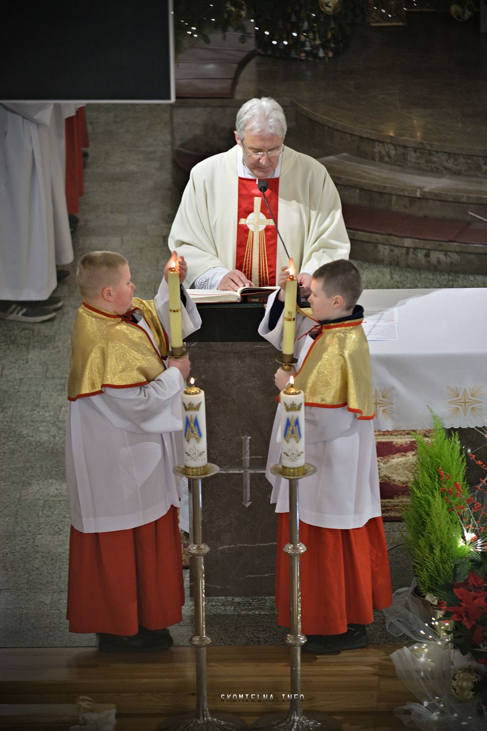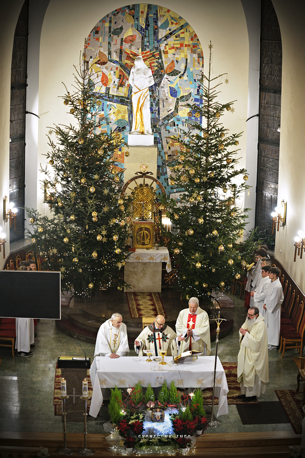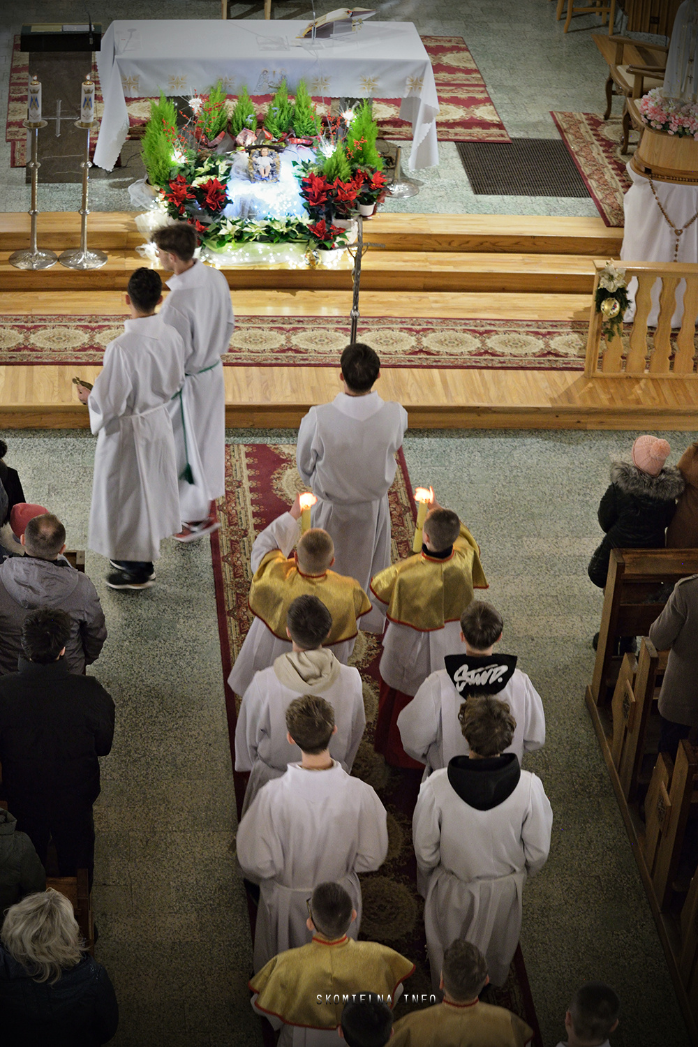 Józefem Macioł oraz, ojciec Wojciech Surówka. Mszę Świętą uświetnił występ Orkiestry Dętej Ochotniczej Straży Pożarnej w Skomielnej Białej i śpiew w wykonaniu ScholI San Sebastian…Kilka zdjęć z dzisiejszej Pasterki. Fot-Zbyszek Kraus