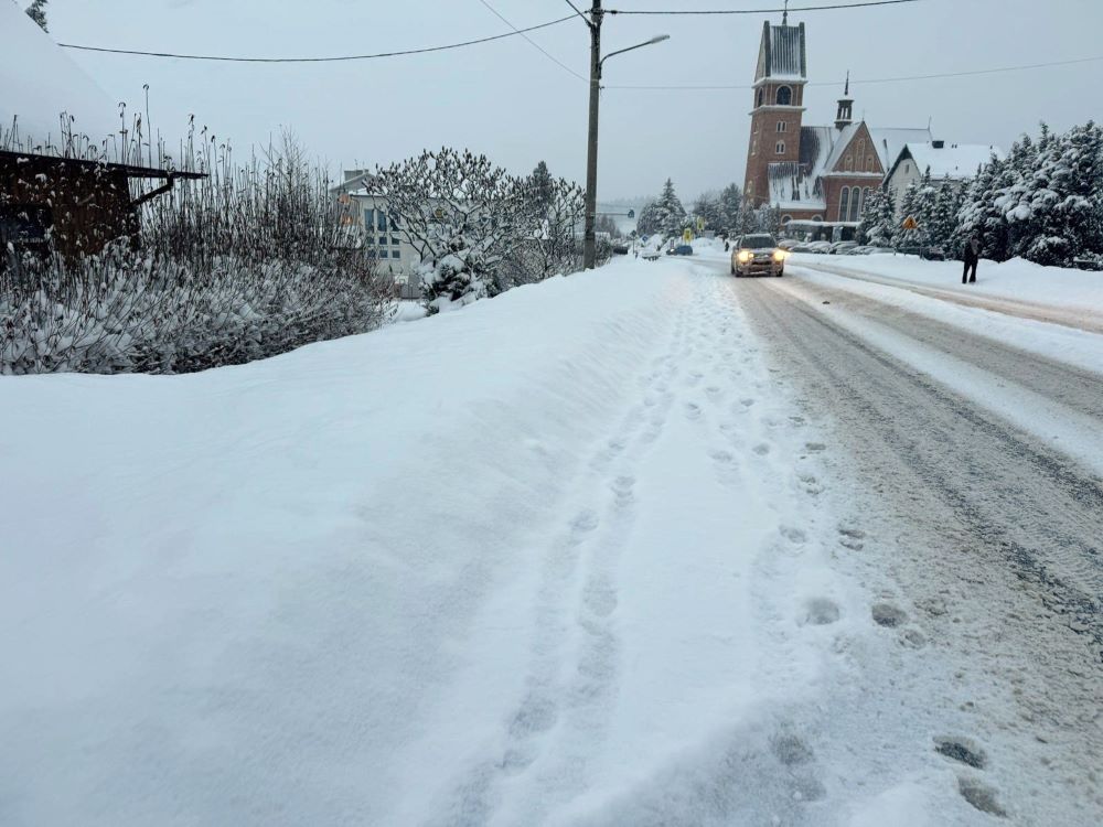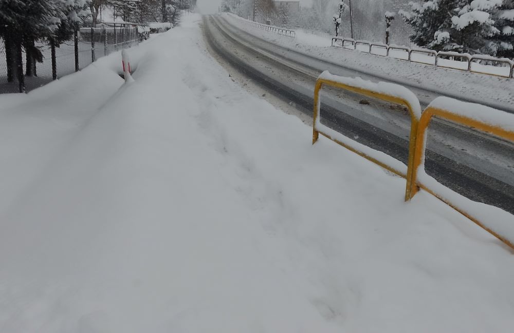 Od niedzieli pobocza w całej Skomielnej nie są w ogóle odśnieżone. Dzieci idą środkiem drogi, bo nie ma gdzie postawić nogi. Obok nich przejeżdżają samochody, autobusy, ciężarówki – wystarczy jeden poślizg i dojdzie do tragedii.