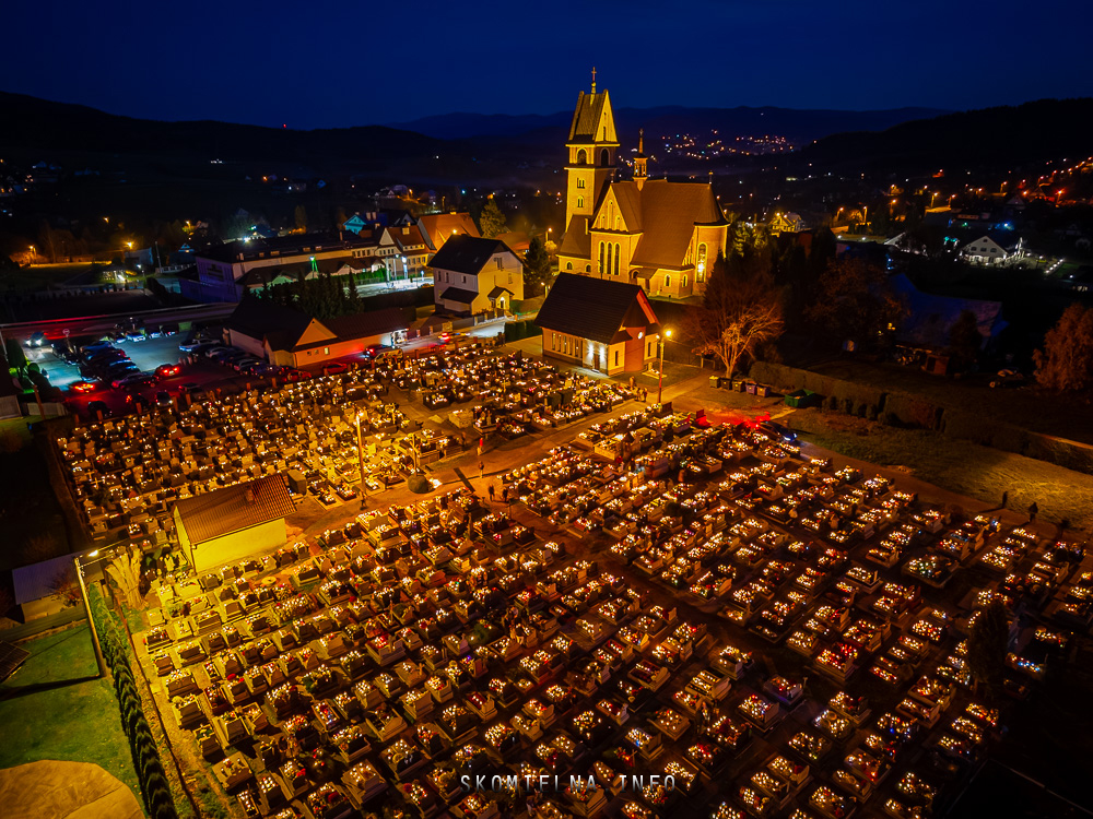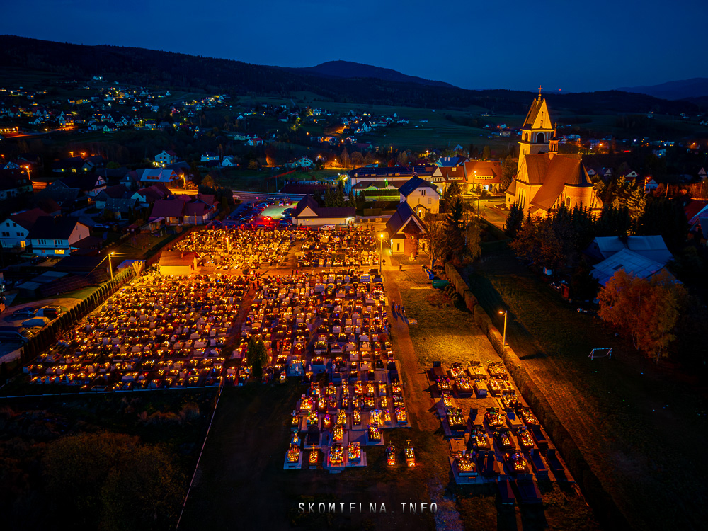 1 LISTOPADA NA CMENTARZU W SKOMIELNEJ BIAŁEJ Z LOTU PTAKA