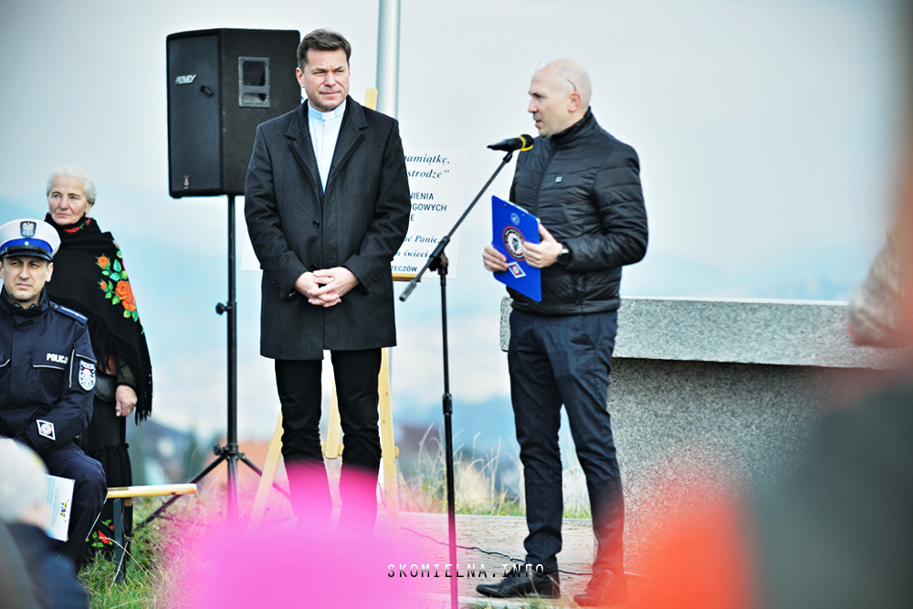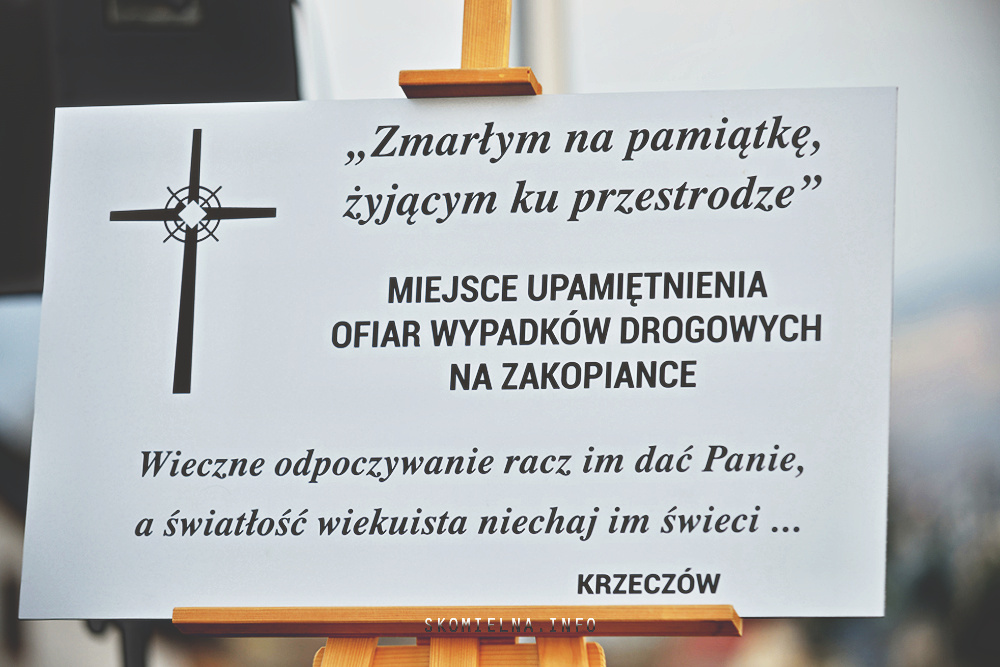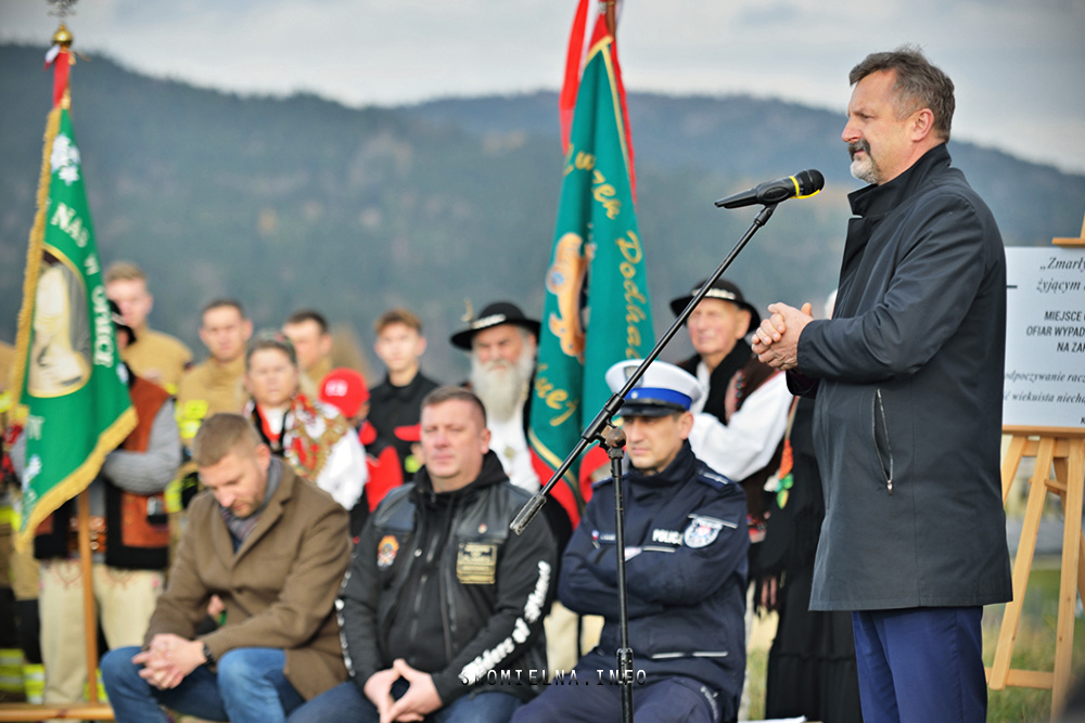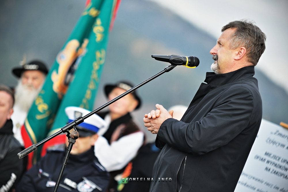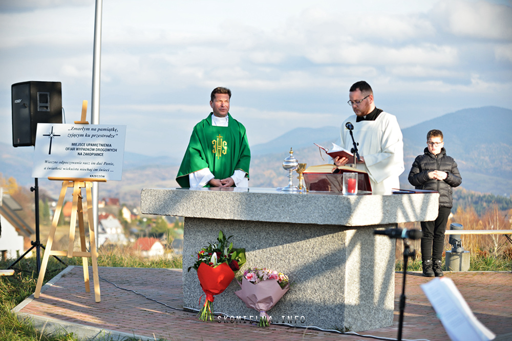 zostały wypuszczone białe gołębie, a trębacz zagrał utwór „Cisza”. Były też dźwięki regionalnej góralskiej kapeli „Ślebodni”. Strażacy przeczytali też listę osób, które zginęły nad zakopianką w ciągu minionych lat. Potem zostały włączone syreny w wozie strażackim OSP Krzeczów. Nie zabrakło też delegacji z pocztami sztandarowymi – Związku Podhalan z Oddziału Górali Myślenickich oraz Związku Podhalan w Skomielnej Białej.