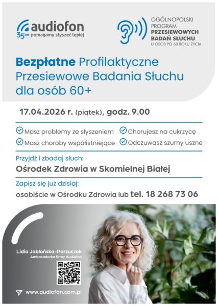 BEZPŁATNE PROFILAKTYCZNE PRZESIEWOWE BADANIE SŁUCHU DLA OSÓB 60+ W OŚRODKU ZDROWIA W SKOMIELNEJ BIAŁEJ